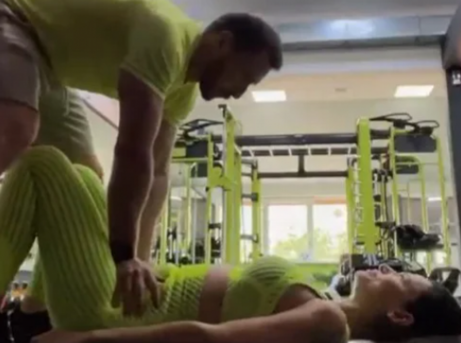 Danas je u teretanu otišla odevena u drečavo zelenu kombinaciju, a helanke i top samo su naglasile njene obline.