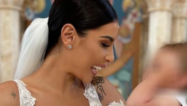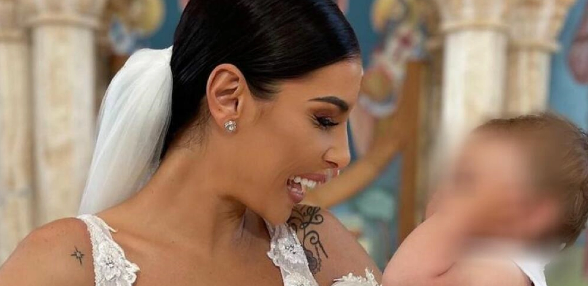Mia je blistala u beloj haljini, naglasila dekolte, a na glavi je imala dugački veo. Ona je pozirala sa ćerkicom dok svog sada muža nije objavljivala na društvene mreže.