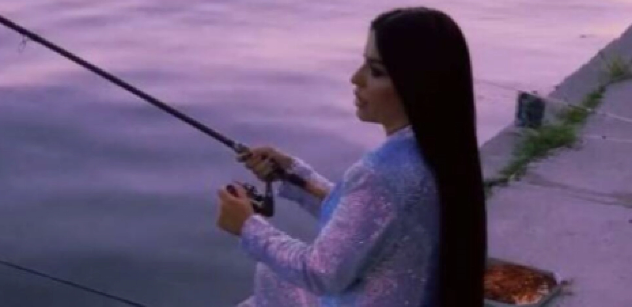 Pevačica je na sebi ima elegantno šljokičasto odelo i brushalter od istog materijala, a ništa je to nije omelo da sedne i peca.
