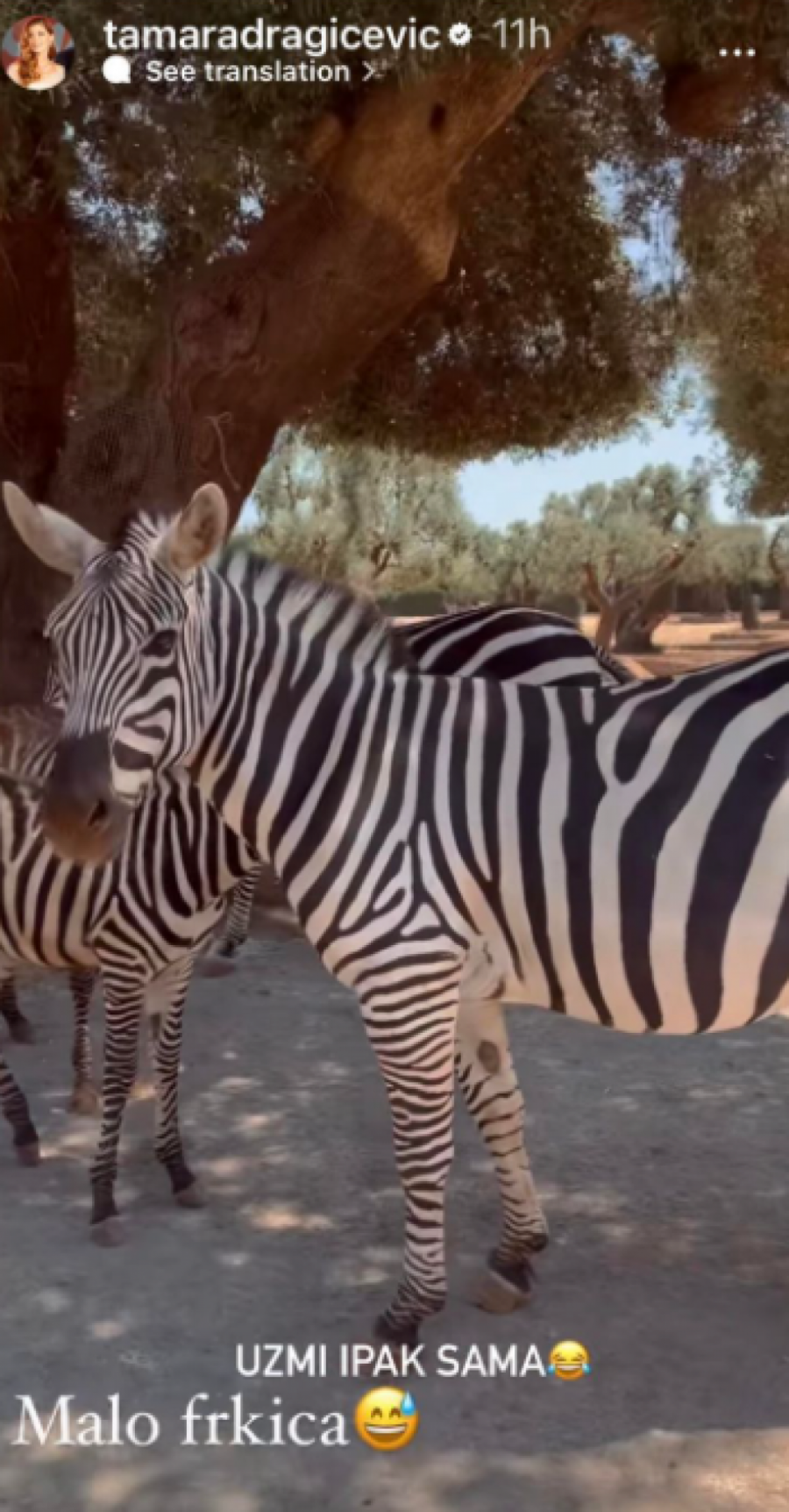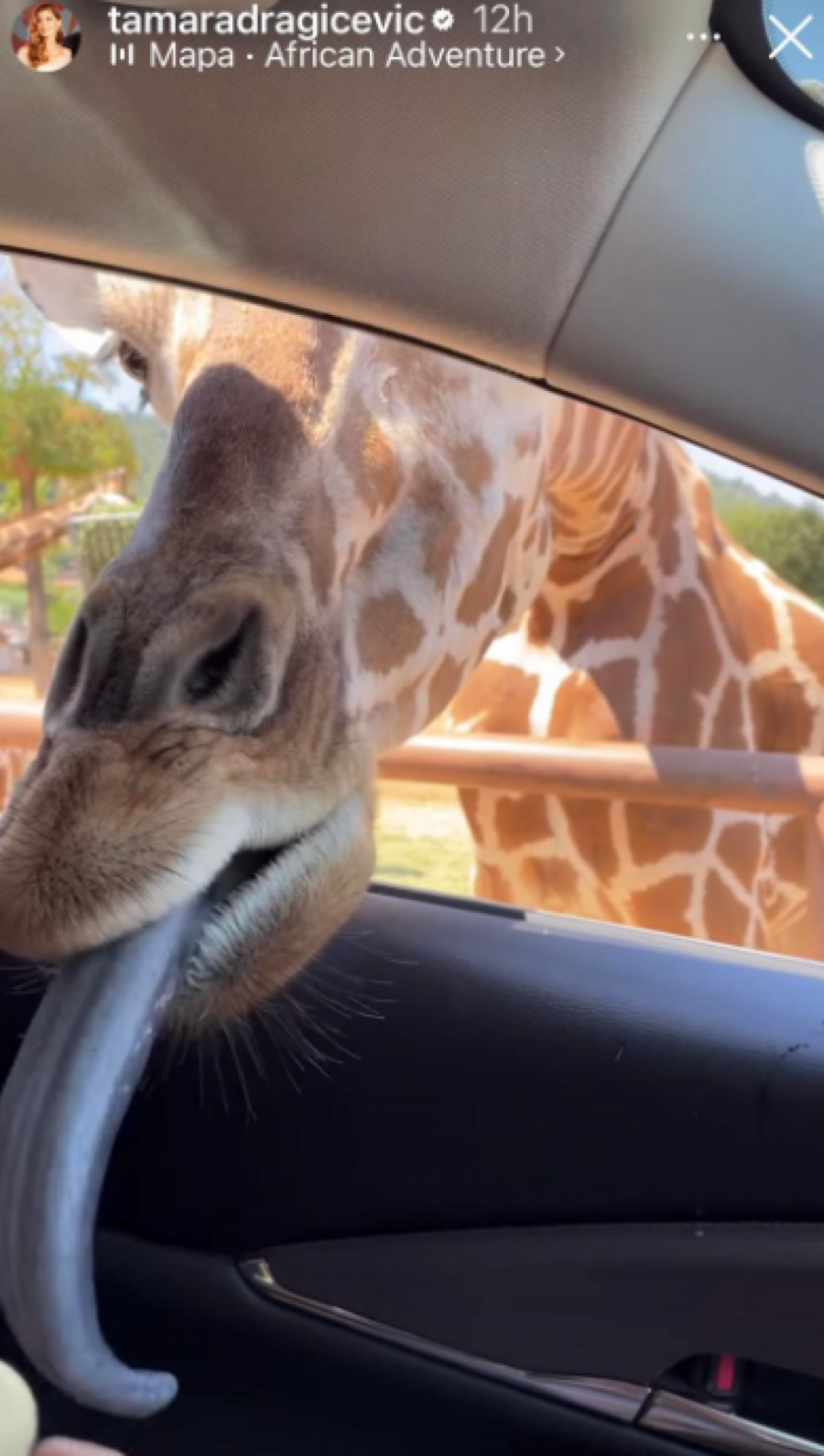 Osim žirafe, glumica je zabeležila i zebre, tigra, majmune, a posebno se oduševila srni.