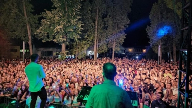 Pet hiljada ljudi peva uglas s Kovačevićem sve njegove hitove na maloj sceni ispred Arhiva, na otvorenom.
