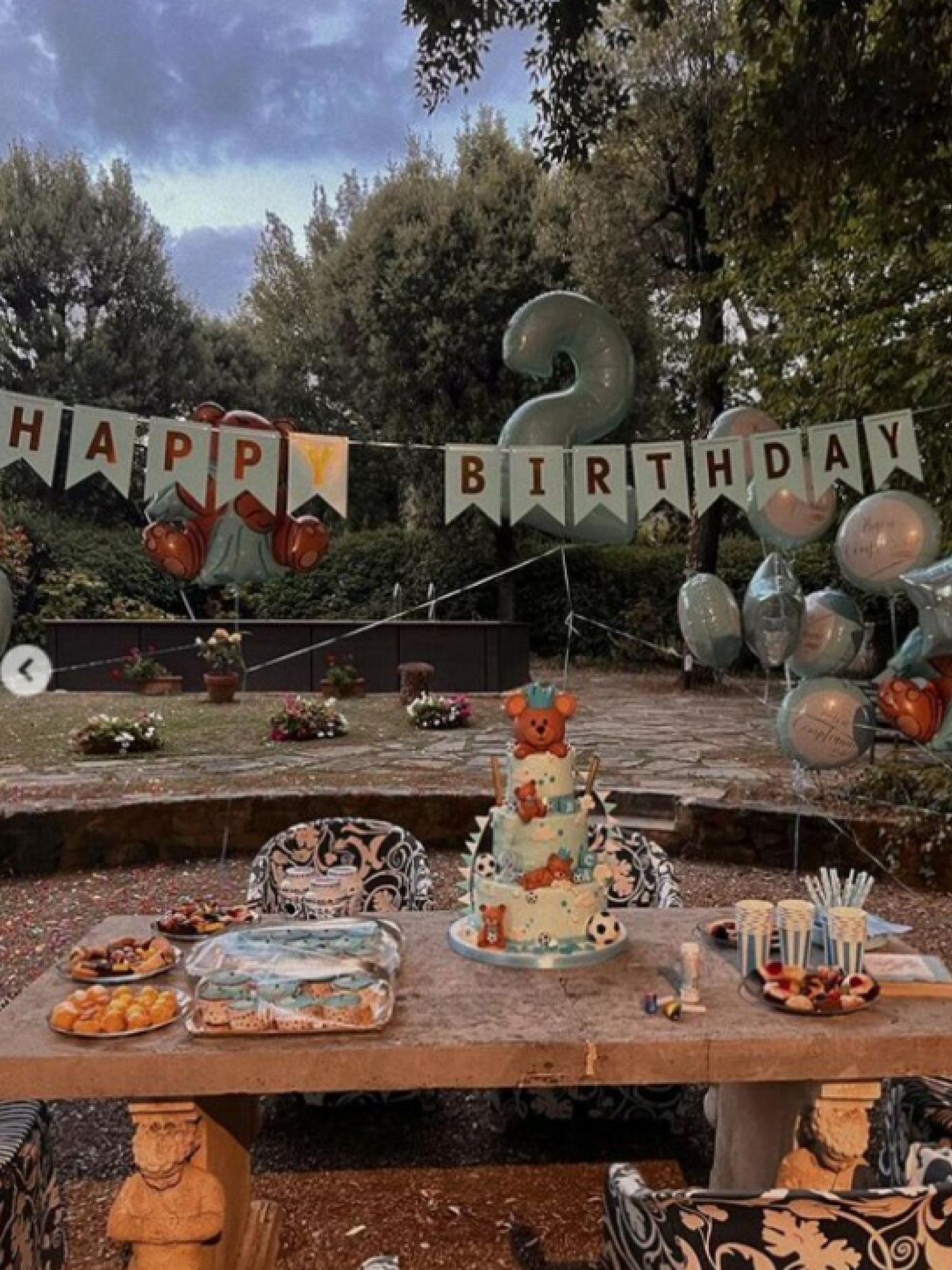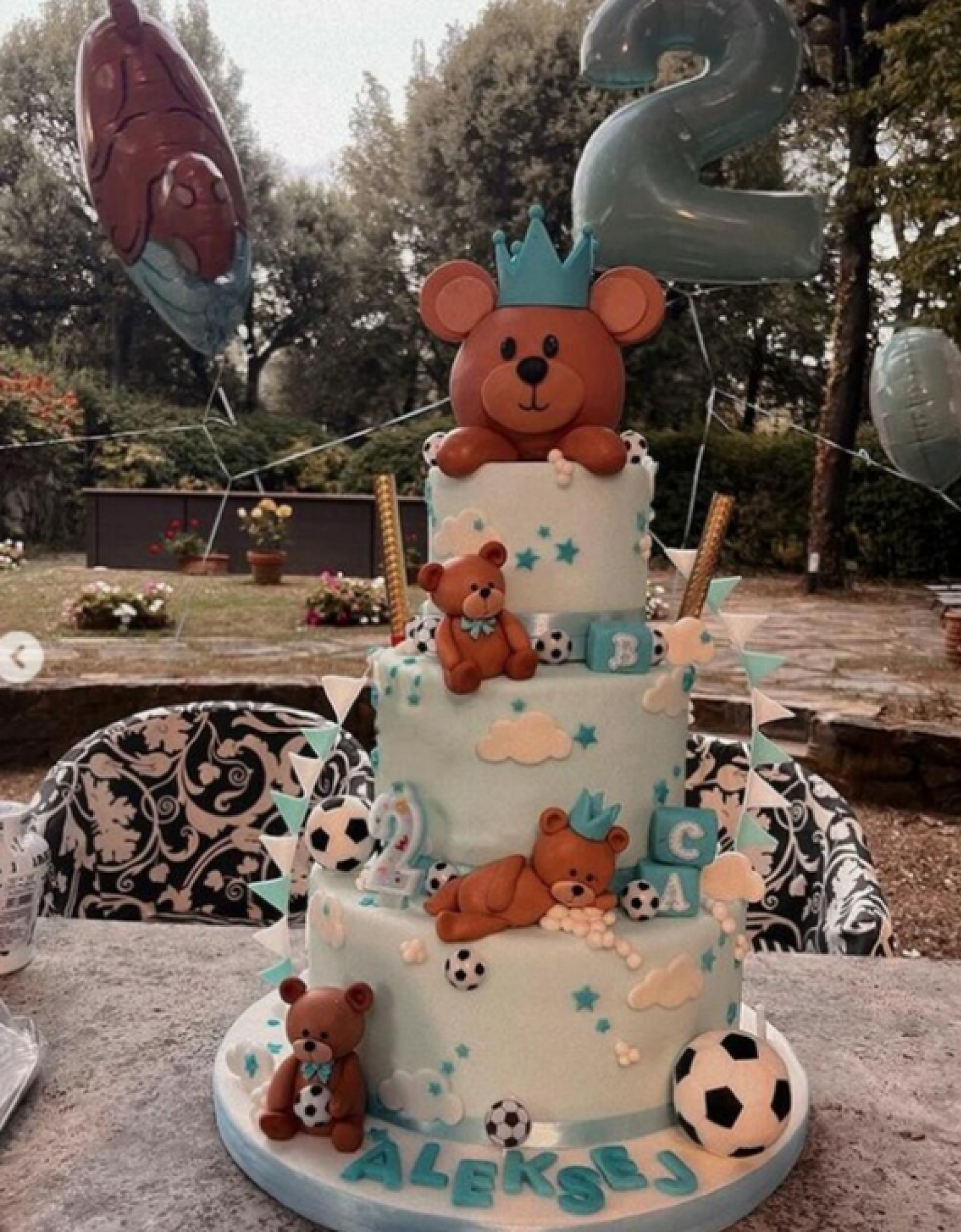 Na fotografijama možemo videti tortu na tri sprata, mnoštvo kolača, sokova i balona, a sve je ukrtašeno fudbalskim loptama i medvedićima u braon-plavoj kombinaciji.