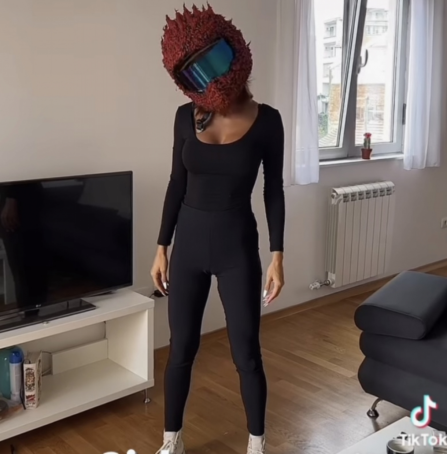 Naime, pevačica se snimala dok đuska uz pojačanu muziku obučena u usku, sportsku kombinaciju, pa seksi video začinila specifičnom kacigom koju je stavila na glavu.