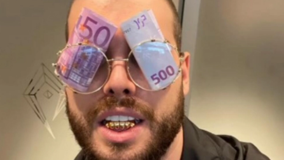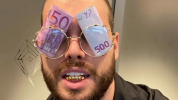 Adam, samoprozvani "Bog obrva", objavio je sliku na kojoj pozira smešeći se i otkrivajući zlatne zube, dok je u naočare ugurao dve novčanice od po 500 evra.