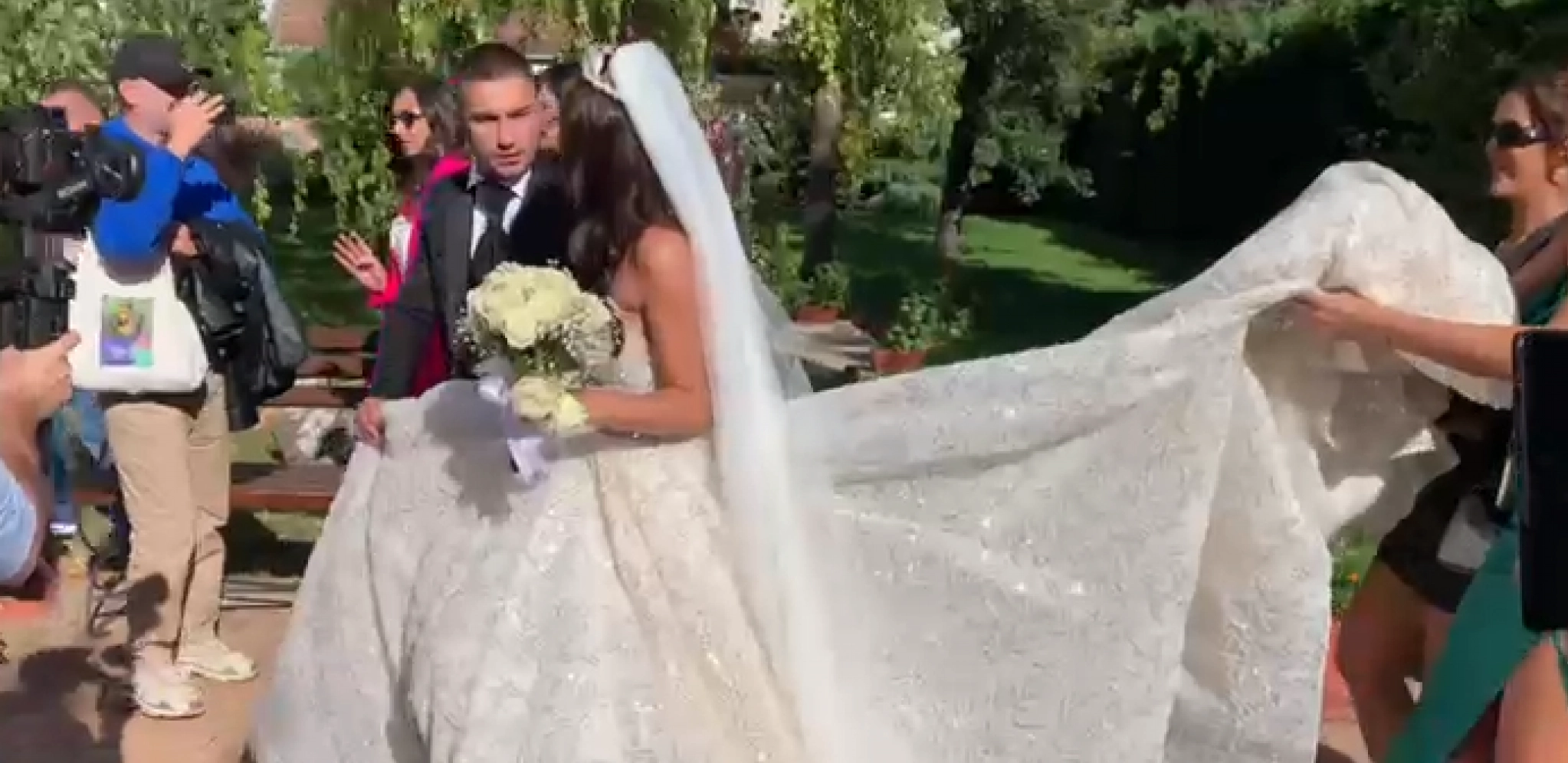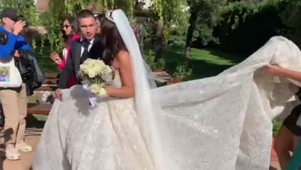 Podsetimo, mlada je zablistala u dugačkoj, beloj venčanici balskog kroja, a nosila je krunu na glavi. Mirko je poneo svečano odelo sa radom koje je upario uz belu košulju.