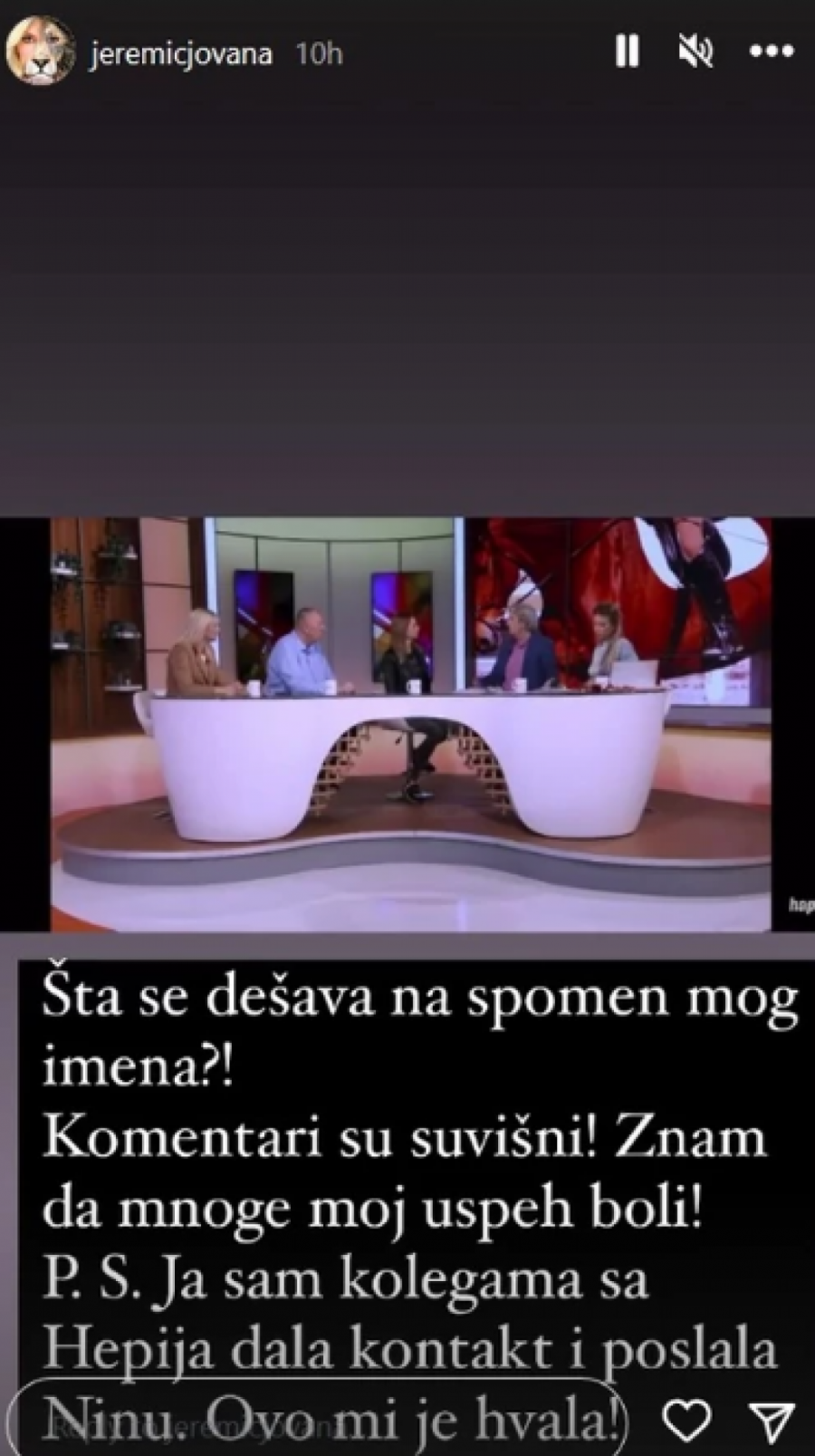 Voditeljka Jovana Jeremić odmah je reagovala na prozivke bivšeg prijatelja i kolege Milomira Marića, sa kojim je dugi niz godina radila na Hepi televiziji.
