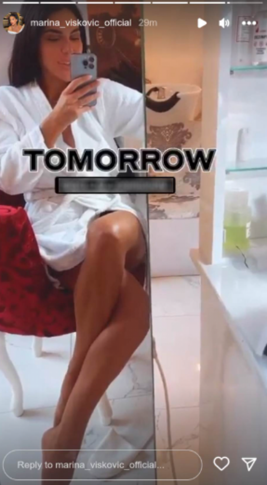 Pevačica Marina Visković nakon što je pratiocima na Instagramu najavila nešto novu u trenerci koju je zatim skinula i ostala u tangama, odlučila je da ih počasti još jednim izazovim kadrom.