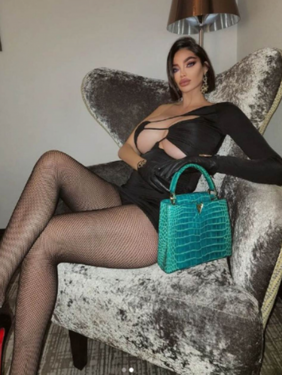 Na Sorajinom profilu na Instagramu osvanuo je niz novih fotografija na kojima pozira u mrežastim čarapama, kratkoj haljinici koja jedva da ima materijala da pokrije sve intimne delove, a u prvi plan je izbacila ogromne silikone i duge noge.