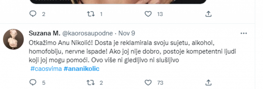 LUDA JE, NEKA JOJ NEKO POMOGNE! Tviter se usijao, svi komentarišu skandalozno ponašanje Ane Nikolić: Dosta je reklamirala svoju sujetu, alkohol, homofobiju i nervne ispade