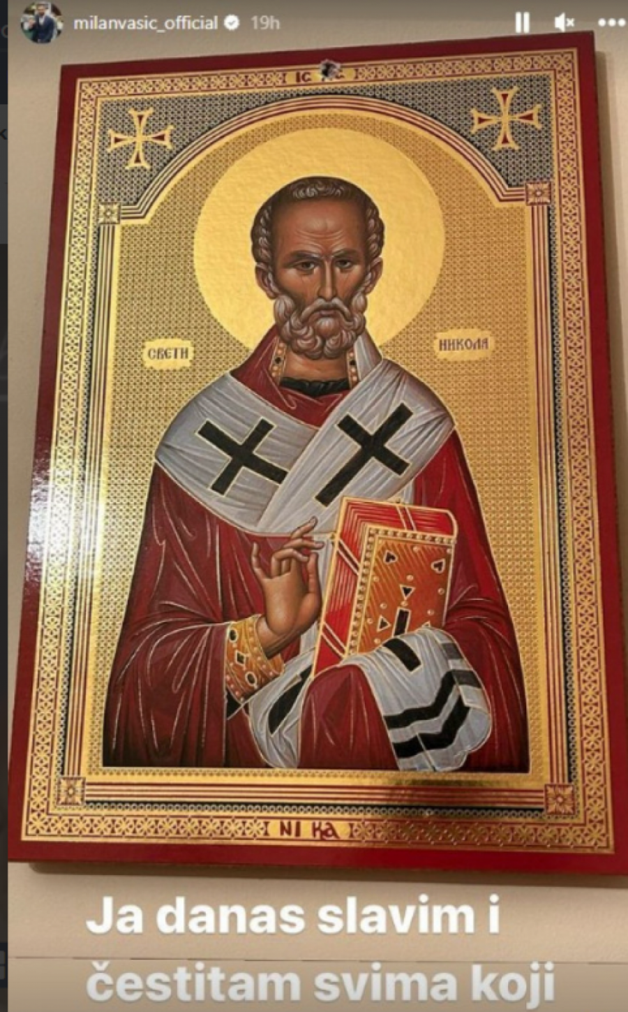 - Ja danas slavim i čestitam svima koji slave Svetog Nikolu - napisao je on na svom Instagram nalogu.