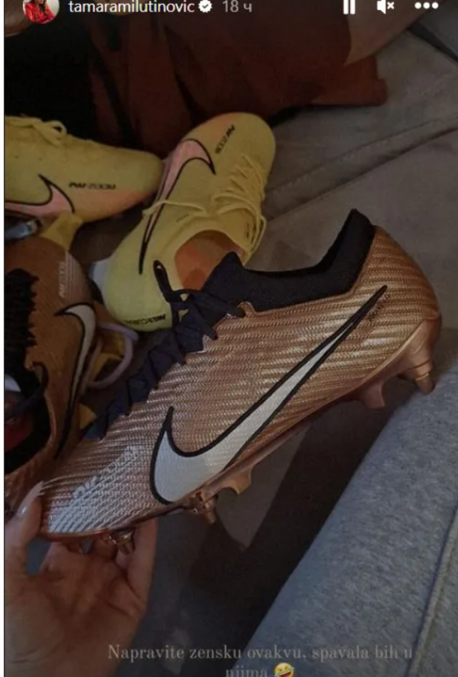 U pitanju su kopačke od materijala koji se presijava u bronzanoj boji koje su Tamaru oduševile toliko da bi volela da ih i sama ponese.