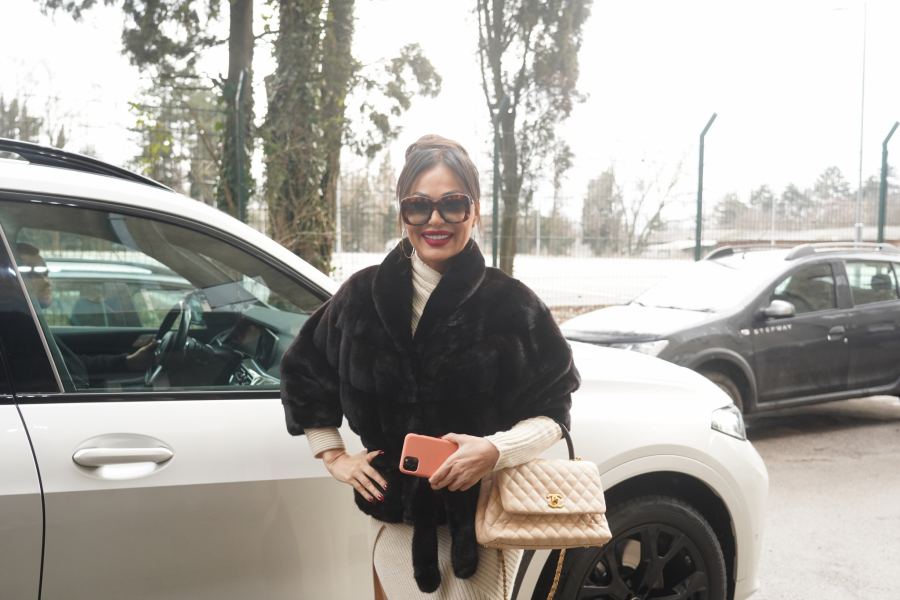 Ceca je za ovu priliku ponela bež haljinu sa šlicem do kuka, dok ju je grejala bunda od nerca, koja košta 20.000 evra.
