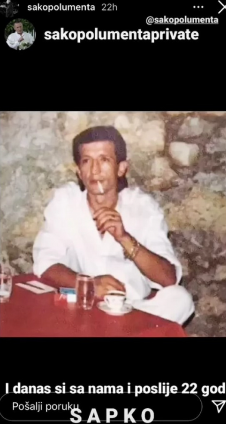 - I danas si sa nama i nakon dvadeset dve godine - napisao je pevač dok je u pozadini išla pesma "Brate" koju je pevač nakon smrti posvetio Šapku.