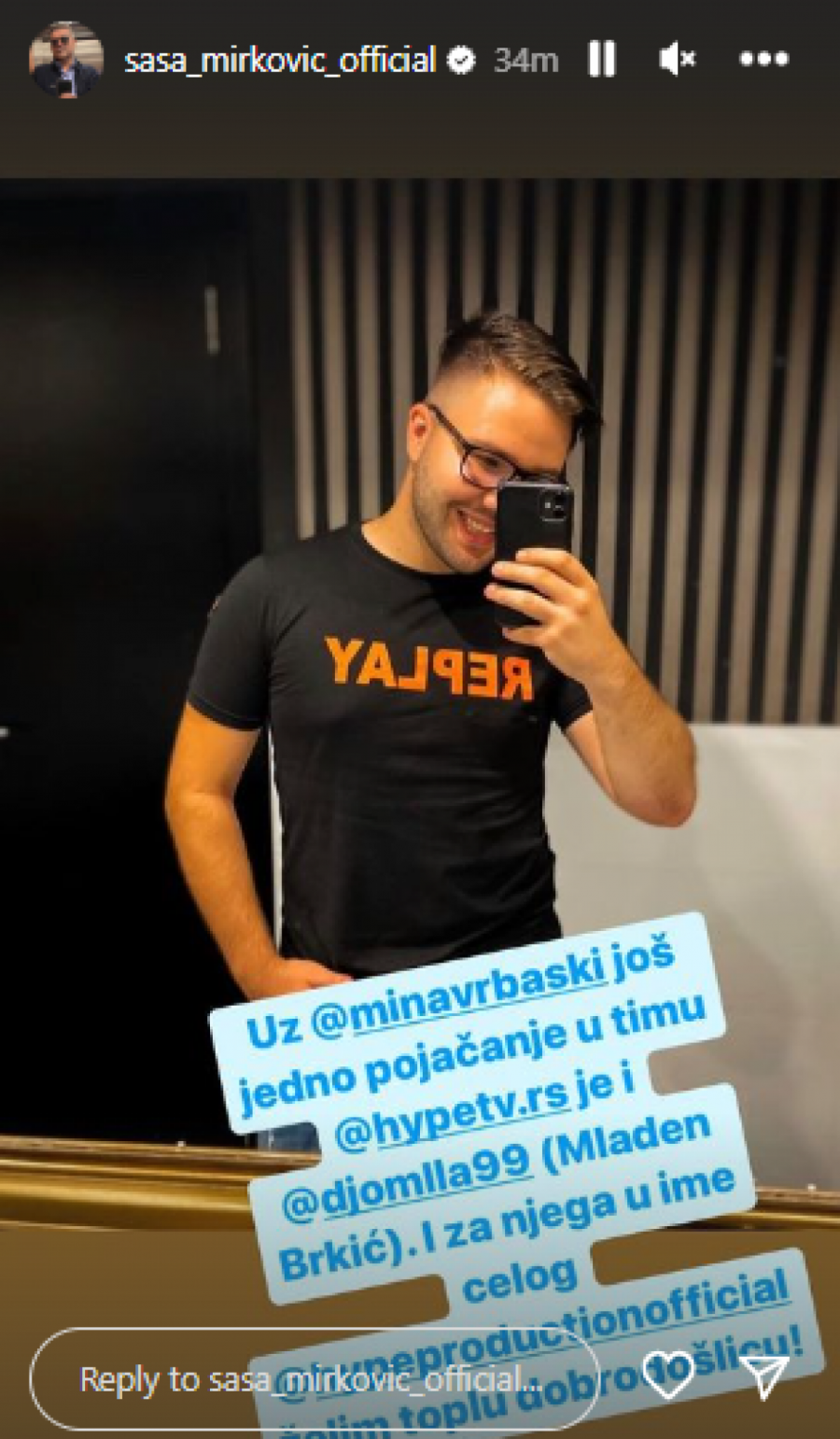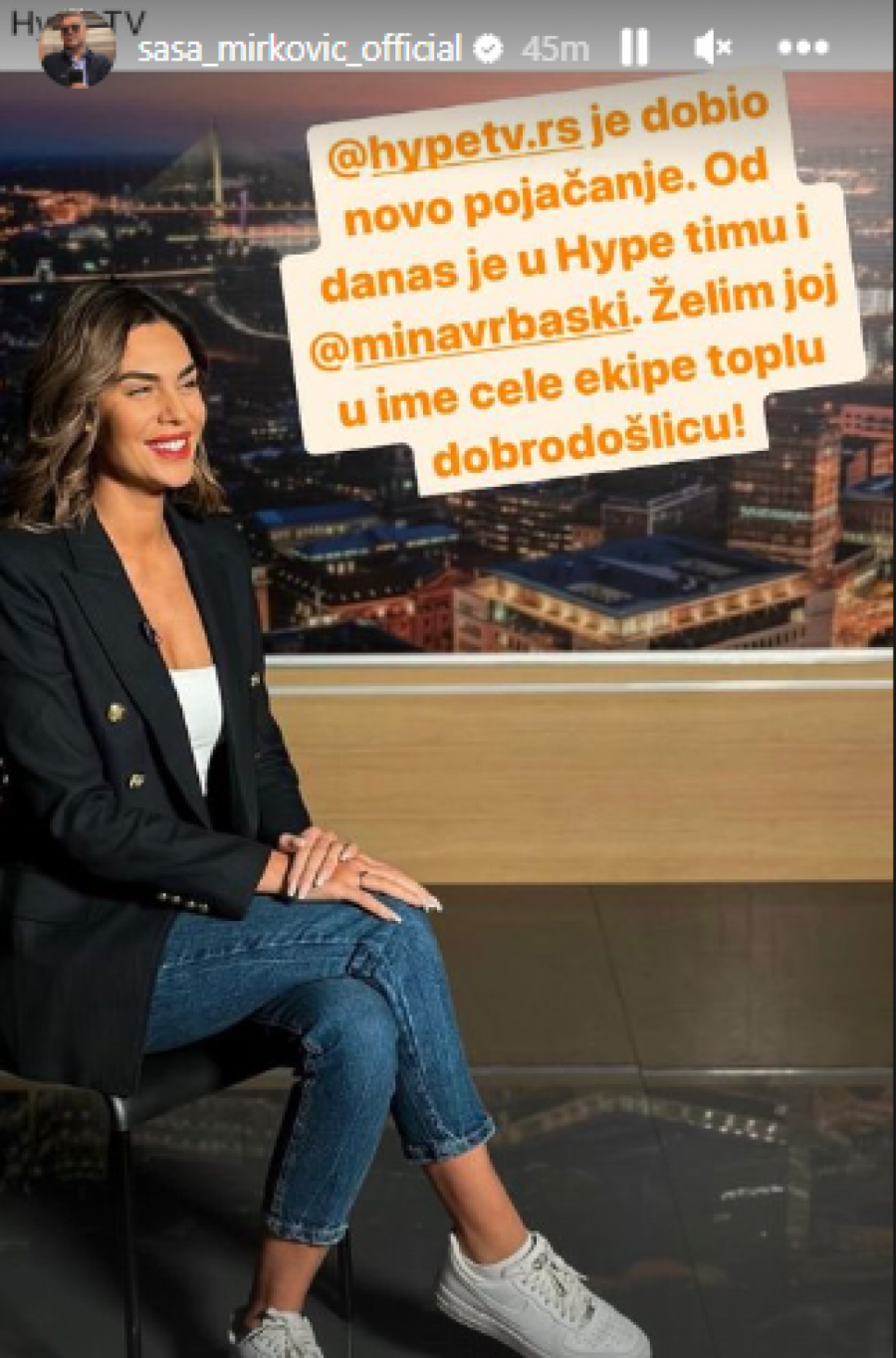 - Hype TV je dobio novo pojačanje. Od danas je u Hype timu i Mina Vrbaški. Želim joj u ime cele ekipe toplu dobrodošlicu. Uz Minu Vrbaški još jedno pojačanje u timu je i Mladen Brkić. - pružio je podršku Saša Mirković, vlasnik pomenute televizije svojim novim TV licima.