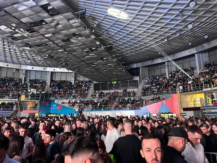 Koncert još uvek nije počeo zbog velikog interesovanja publike koja je došla u ogromnom broju, a redovima se ne nazire kraj.