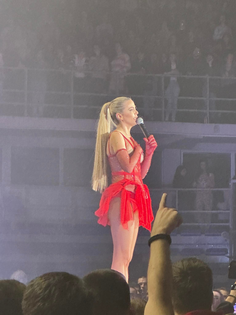Pavlovićeva je koncert otvorila pesmom "Posesivna bivša" uz pratnju svojih igrača i audio vizuelnih efekata.