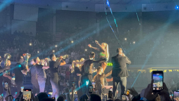 Orkestar Dejana Petrovića izašao na binu, Milica Pavlović se popela na sto i pevala "Nišku banju" (FOTO+VIDEO)