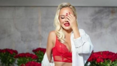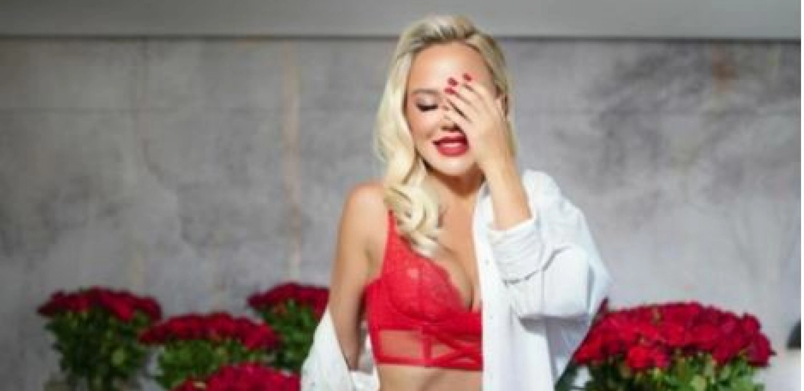 Pevačica je nasmejana pozirala uz ruže. Na sebi je nosila samo crveni grudnjak i gaćice uz belu košuljicu.
