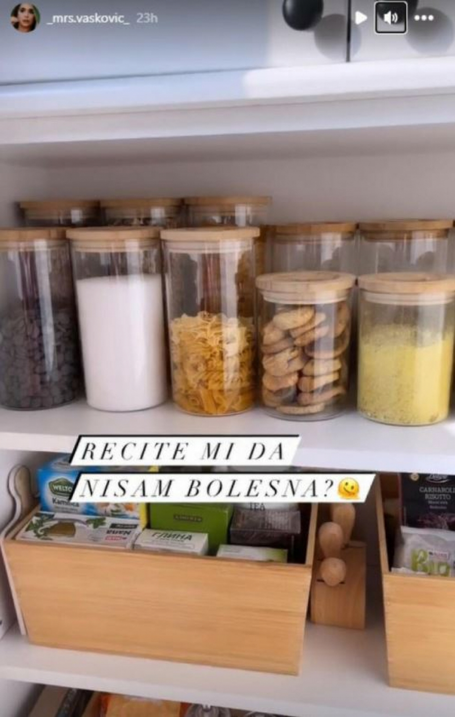Gospođa Vasković mnogo vremena provodi u kuhinji, a kako kaže, voli da je sve na svom mestu. Tako je i kutak sa začinima sredila, što se vidi u veoma prostranoj beloj kuhinji, koja osim radnog dela ima i veliko ostrvo gde često sprema jela.