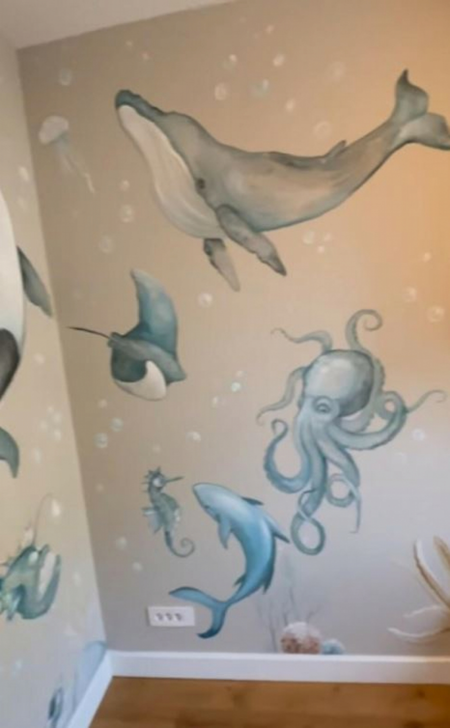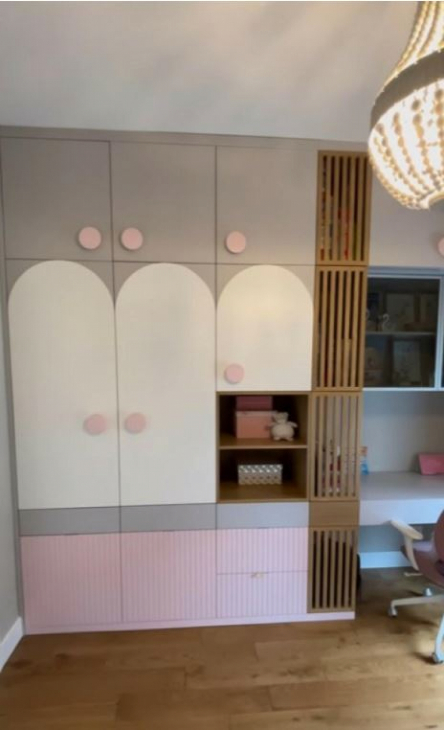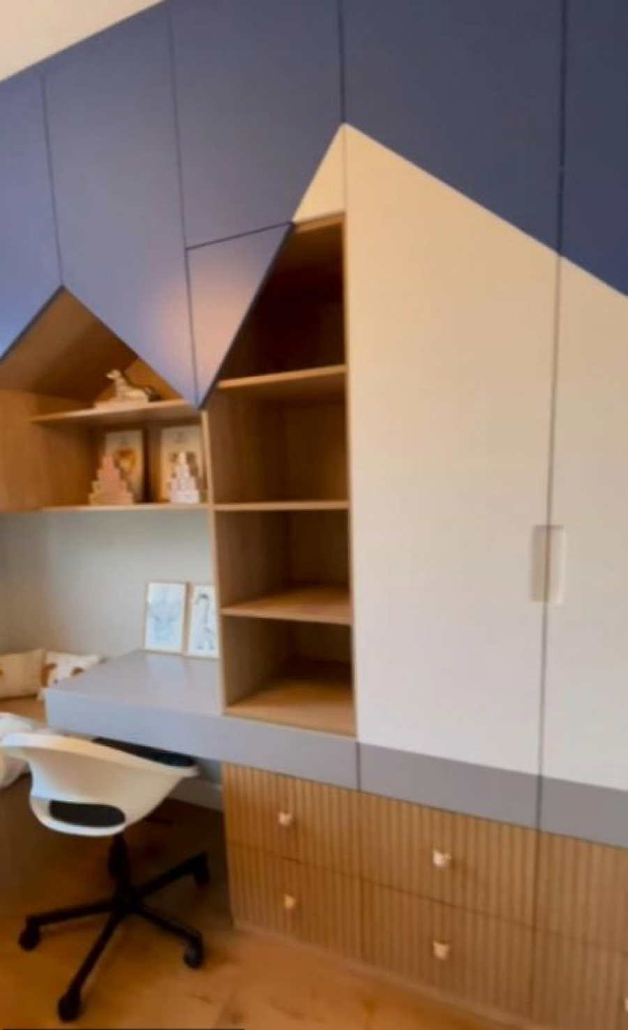 Dečje sobe urađene su u plavoj, odnosno roze boji, sa radnim stolovima koji se uklapaju uz ormane, a da bi sve bilo lepo dekorisano oslikali su i zidove.