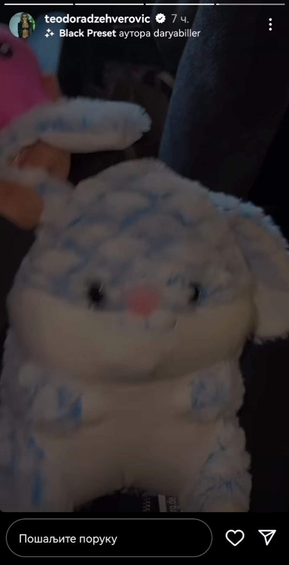 Teodora je sa svojim pratiocima na društvenim mrežama podelila snimak u kojem prikazuje igračke koje je kupila, te je otkrila da sa plišanom životinjom planira da spava.