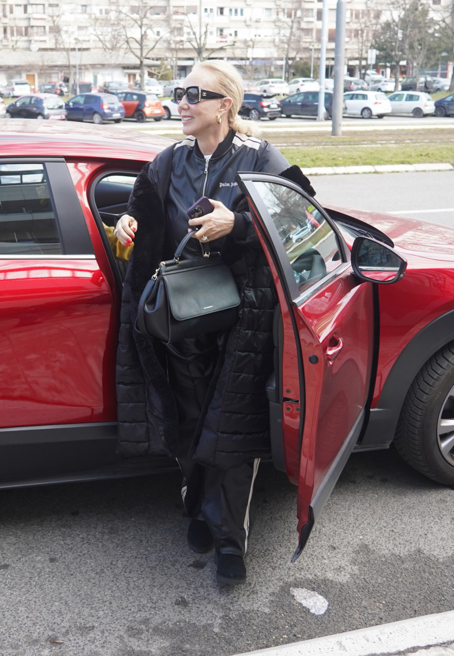 Ona je išla u jednu privatnu kliniku, a na sebi je imala crnu trenerku, ležernu dugačku jaknu, a sve je to upotpunila crnim naočarima.