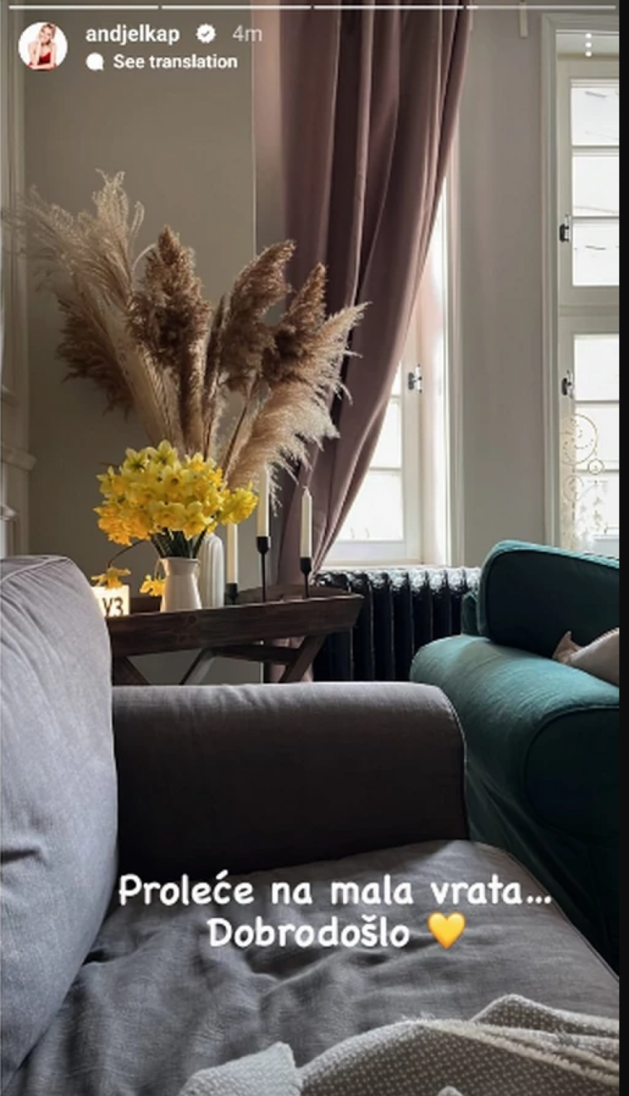 Anđelka je odmarala na garnituri, napravila fotografiju enterijera svog doma koji je ukrasila cvećem i napisala je: