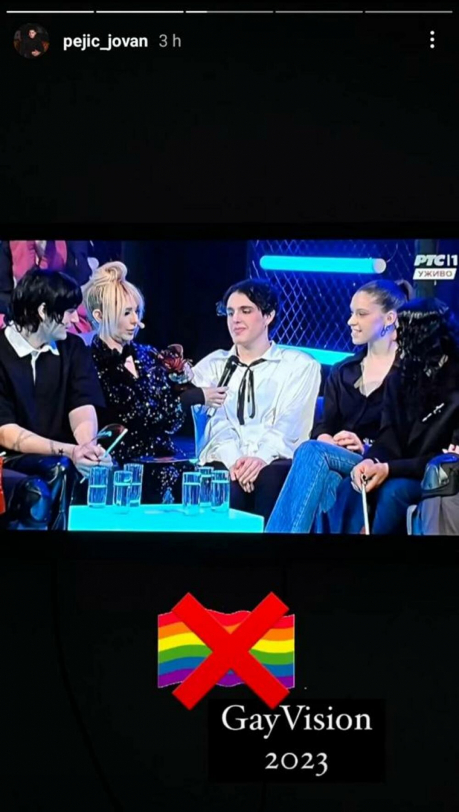 On nije jedini među sinovima poznatih kojima se Luk Blek kao pobednik PZE 2023 ne dopada. I naslednik Zlate Petrović i Zorana Pejića Peje, Jovan Pejić, oštro je komentarisao nastup ovogodišnjeg predstavnika Srbije za Evroviziju. On je prvo objavio fotografiju Luke, ispod nje stavio precrtanu zastavu LGBT pripadnika i napisao "GayVision", a potom objavio i pojašnjenje.