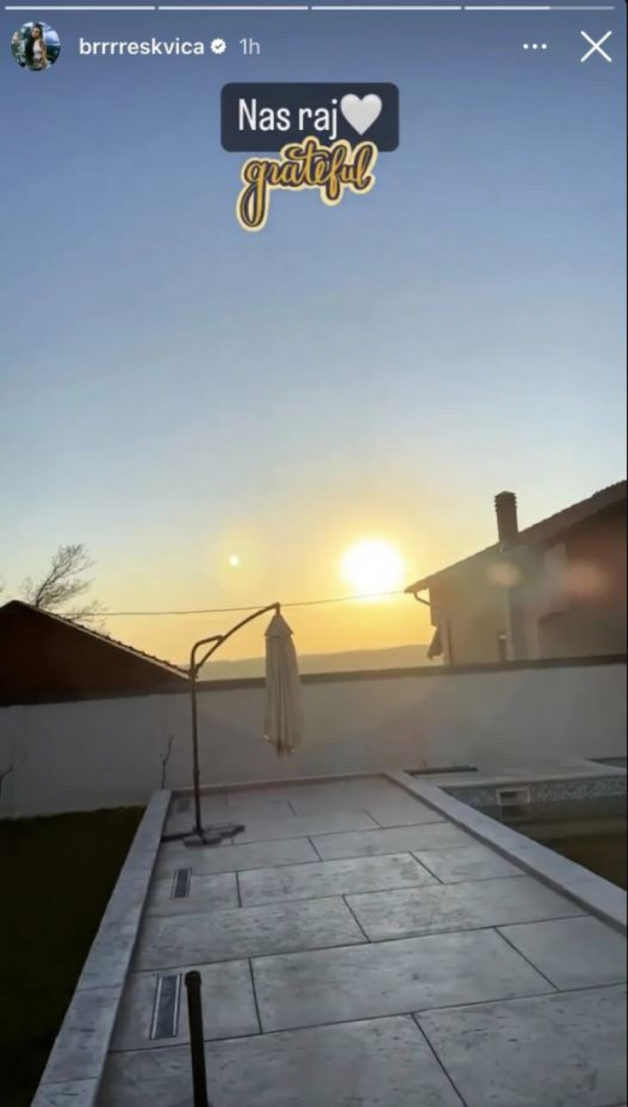 Ona je potom pokazala pogled koji se pruža sa njenog imanja na obližnje brdo, a u objavama vidimo i bazen, veliku drvenu ogradu i travnjak.