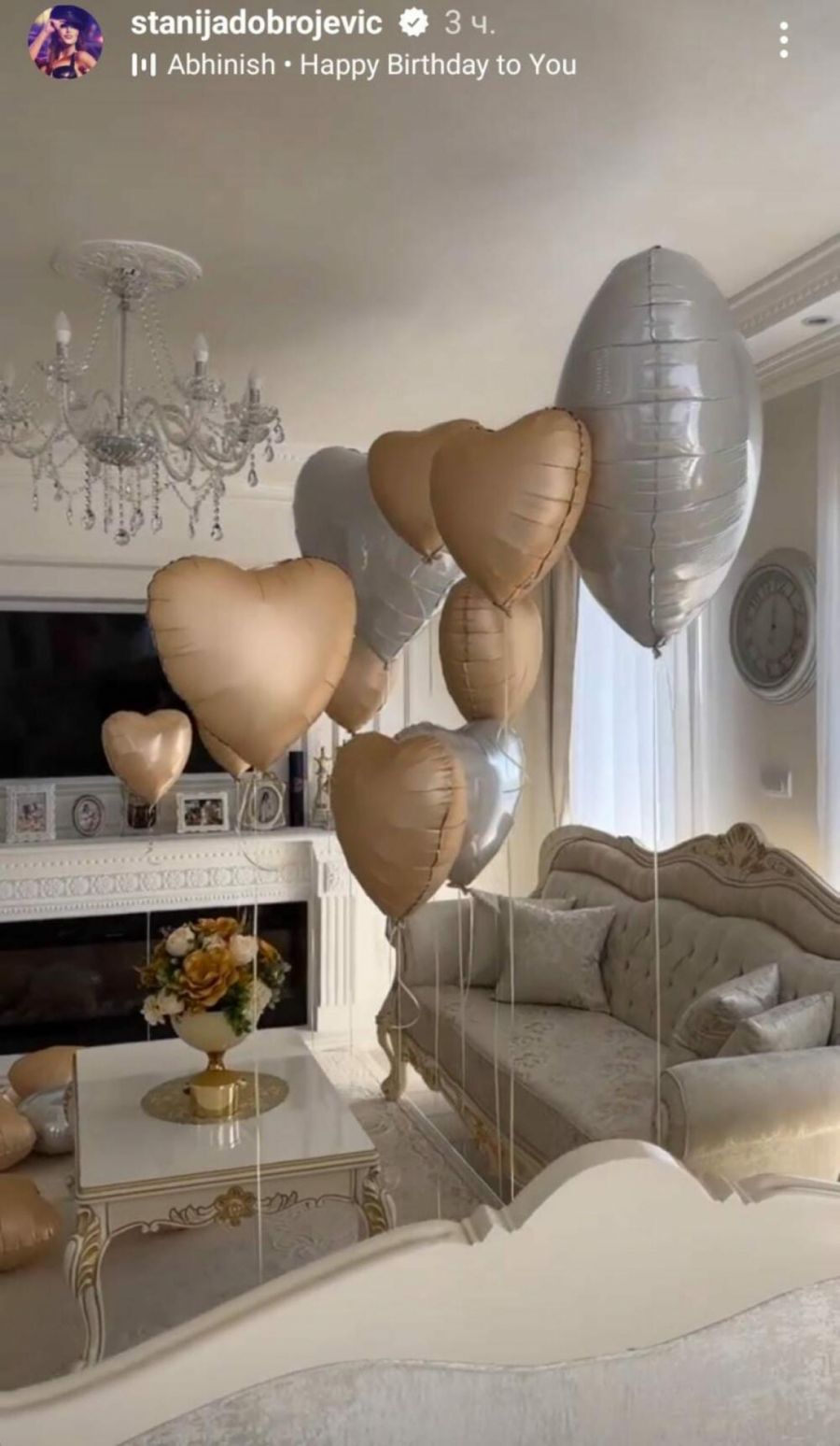 Dnevna soba je vrvela od balkona u obliku srca, koji se slažu uz kompletan enterijer, a Dobrojevićeva ipak nije bila sama.