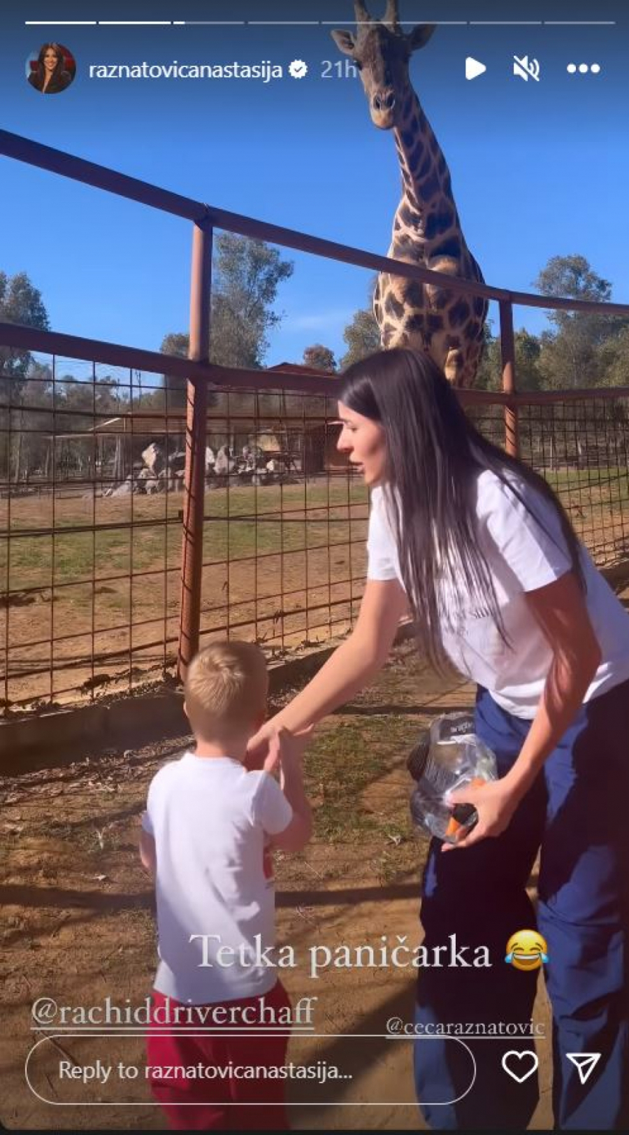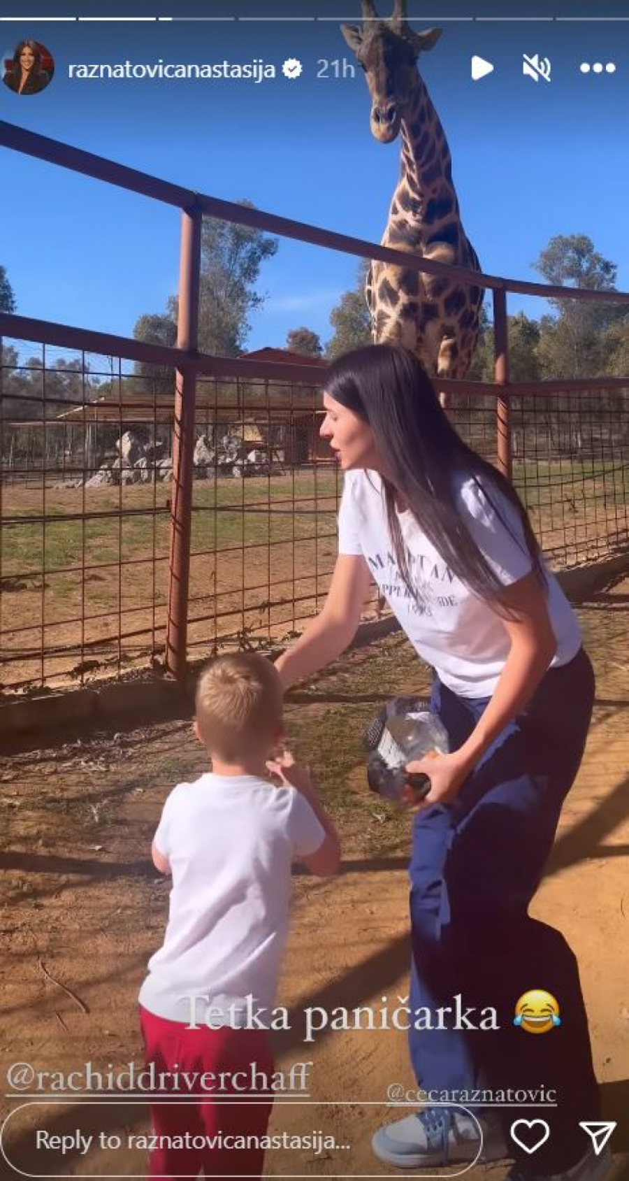 Oni su obišli kavez sa majmunima, slonovima, a nezaobilazne su bile i žirafe, od kojih Anastasija očigledno ima bojazan, barem ako je suditi po snimku.