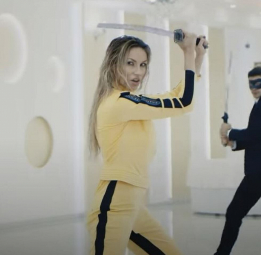 U pitanju je spot za Radinu pesmu "Pola dva" koju je pevačica snimila 2017, a kadrovi gde Rada kao Uma Turman u filmu "Kill Bill" ubija mačem sve oko sebe, pojavljuju se i u spotu Breskvice i Teodore, gde pevačice imaju identične poteze.
