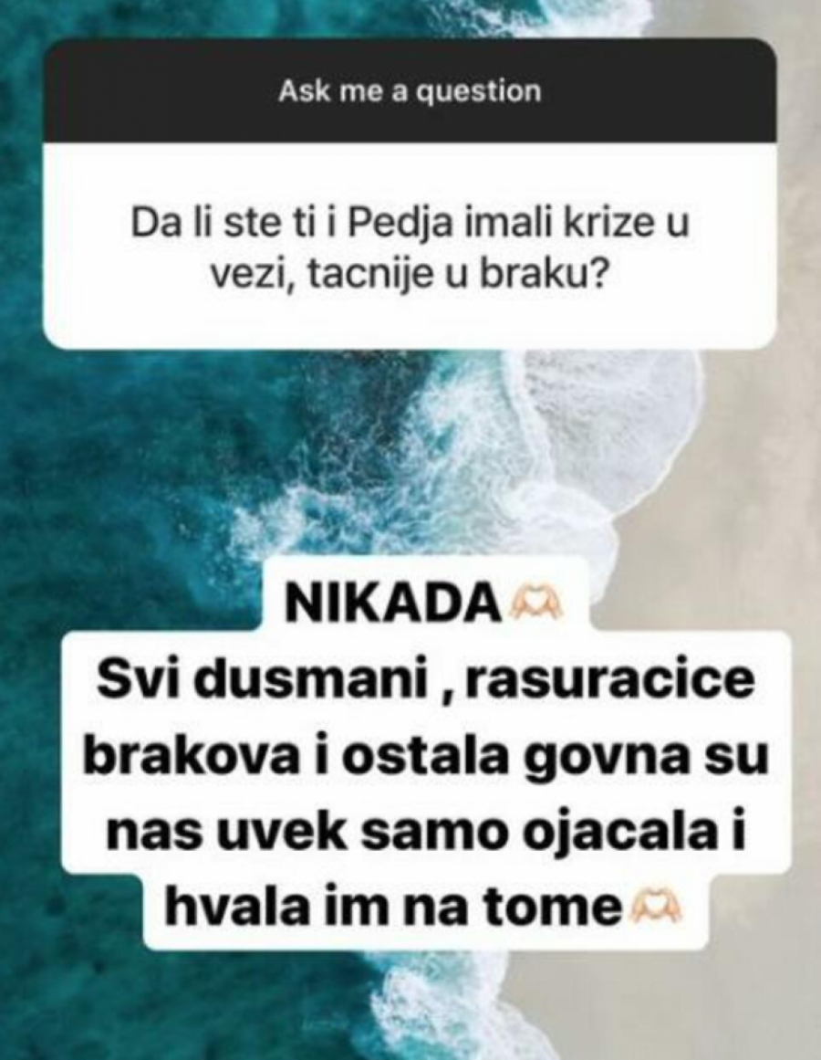 - Nikada nismo imali krizu u braku! Svi dušmani, rasturačice brakova i ostala go*na su nas samo ojačala i hvala im na tome - napisala je Rajkovićka.