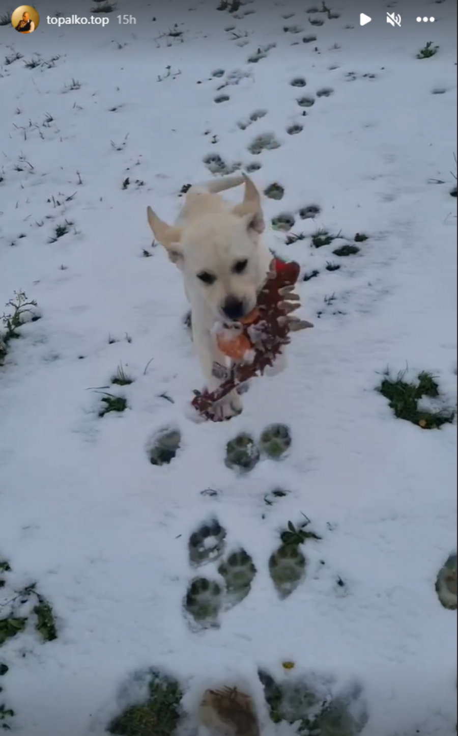 Nakon igre po snegu gde joj je bacao igračku koju mu je ona vraćala, dao joj je komandu da sedne nakon čega je usledila nagrada.