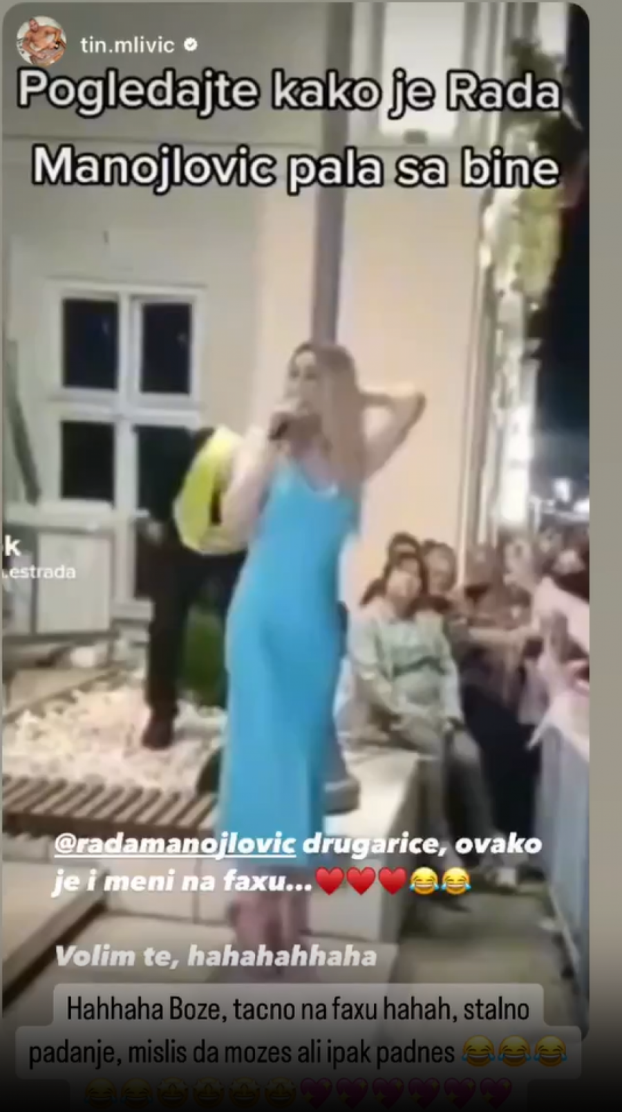 -Pogledajte kako je Rada Manojlović pala sa bine. Dugarice ovako je i meni na faksu – napisala je jedna devojka na Instagramu.