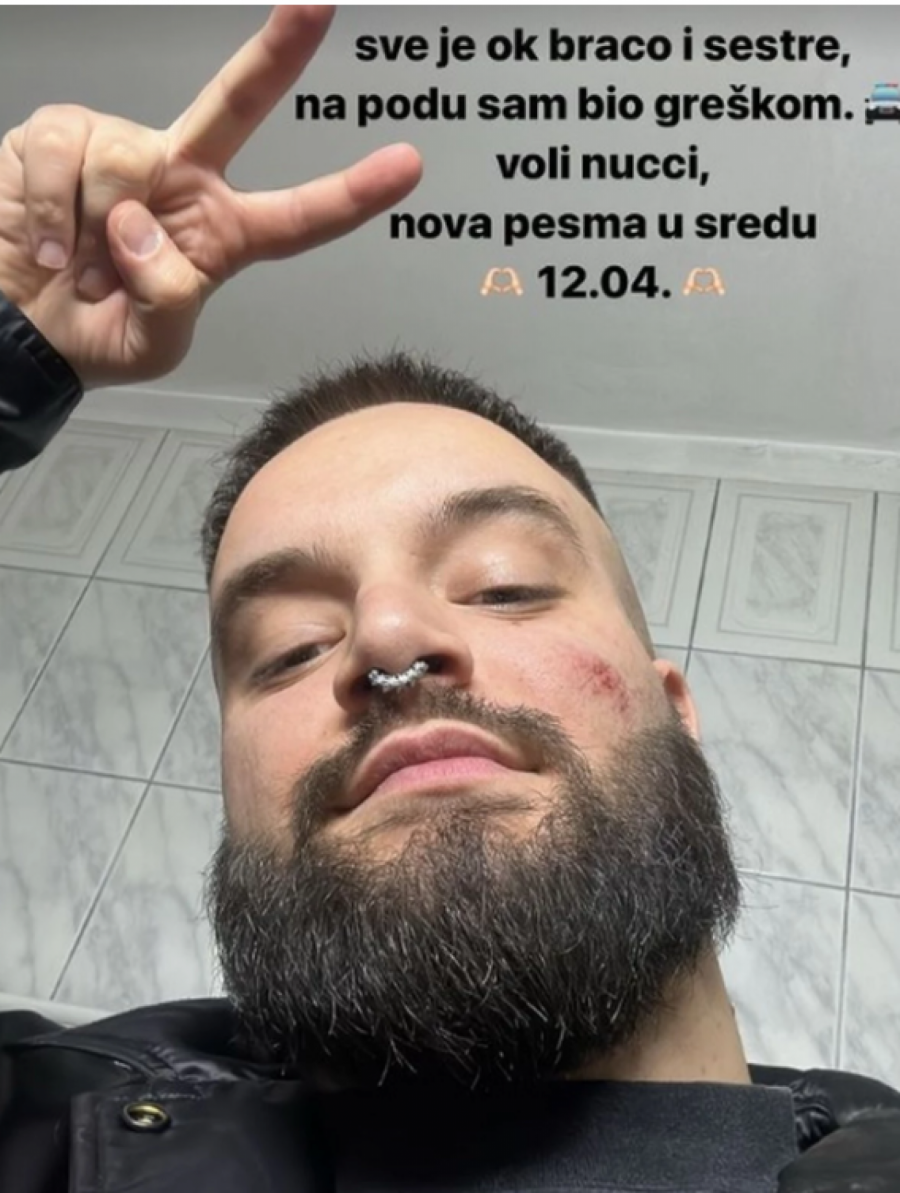 Reper Nući nakon incidenta oglasio se na svom Instagram profilu, gde se videlo da na licu ima ogrebotinu.