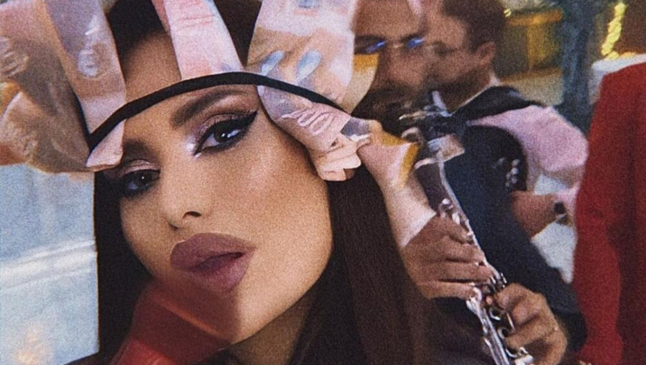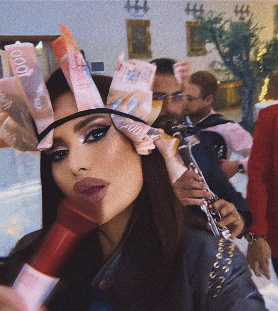 Na slici Indi pozira držeći mikrofon, ali i novčanice od hiljadu dinara ugurane u traku koju je nosila na glavi. Slika je nastala na jednom privatnom veselju na kojem je nastupala s muzičarima, a neimenovani izvor otkriva da je pored dinara na glavi, u ruci držala evre i dolare.