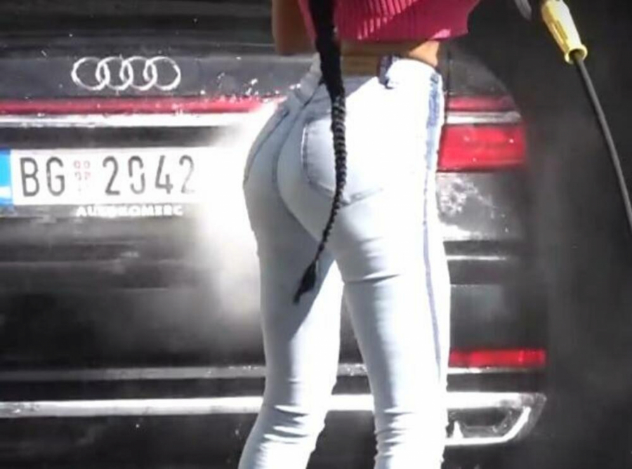 S obzirom da je potpuno sama prala auto, kada se isprskala otišla je da se presvuče a scene su bile više nego vrele.