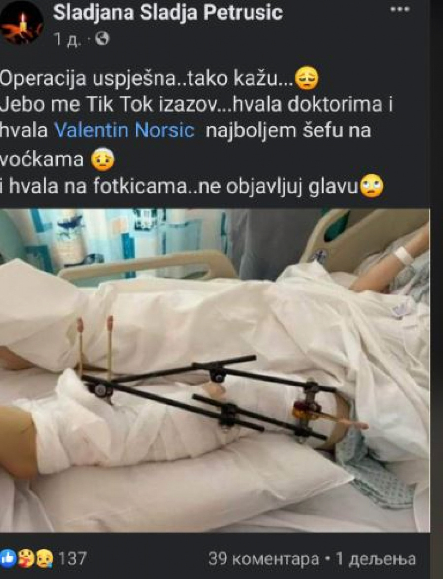 Slađana Slađa Petrušić šokirala je narod kada je najpre slagala da je doživela teške povrede noge, te je koristila tuđe fotografije iz bolničke sobe, a potom je i lažirala sopstvenu smrt.