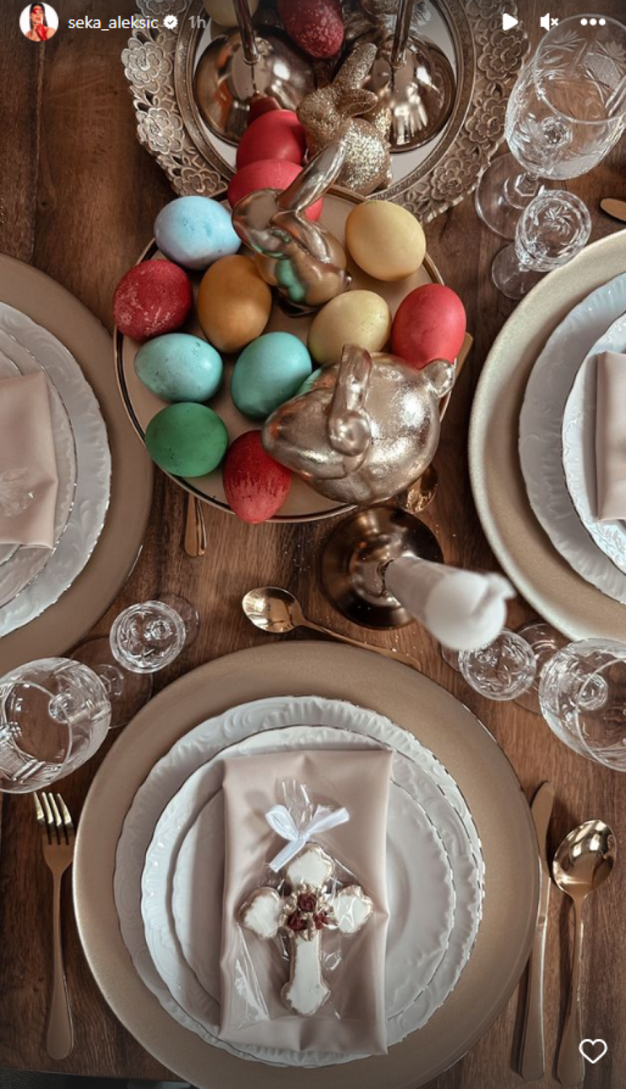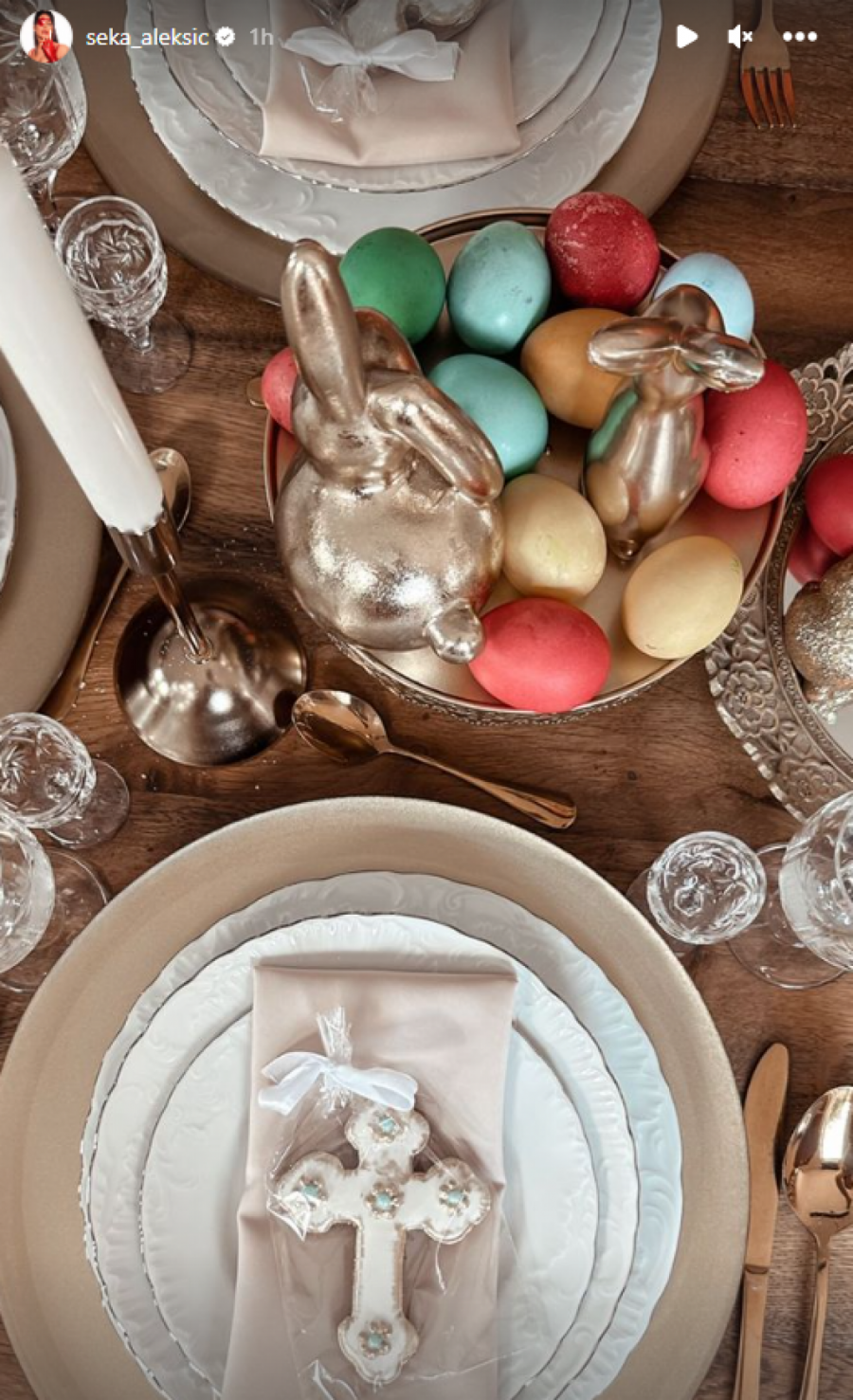 Aleksićeva je snimila sto na kojem su svećnjaci, medenjaci u obliku krsta, šarena jaja, kao i zeke, a uz sve to i prelepo cveće.