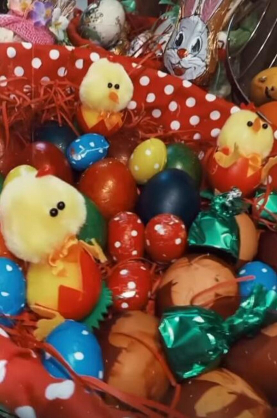 Luna se potrudila da ofarba jaja, a njena trpeza obiluje šarenilom, čokoladicama, igračkicama i bombonama.