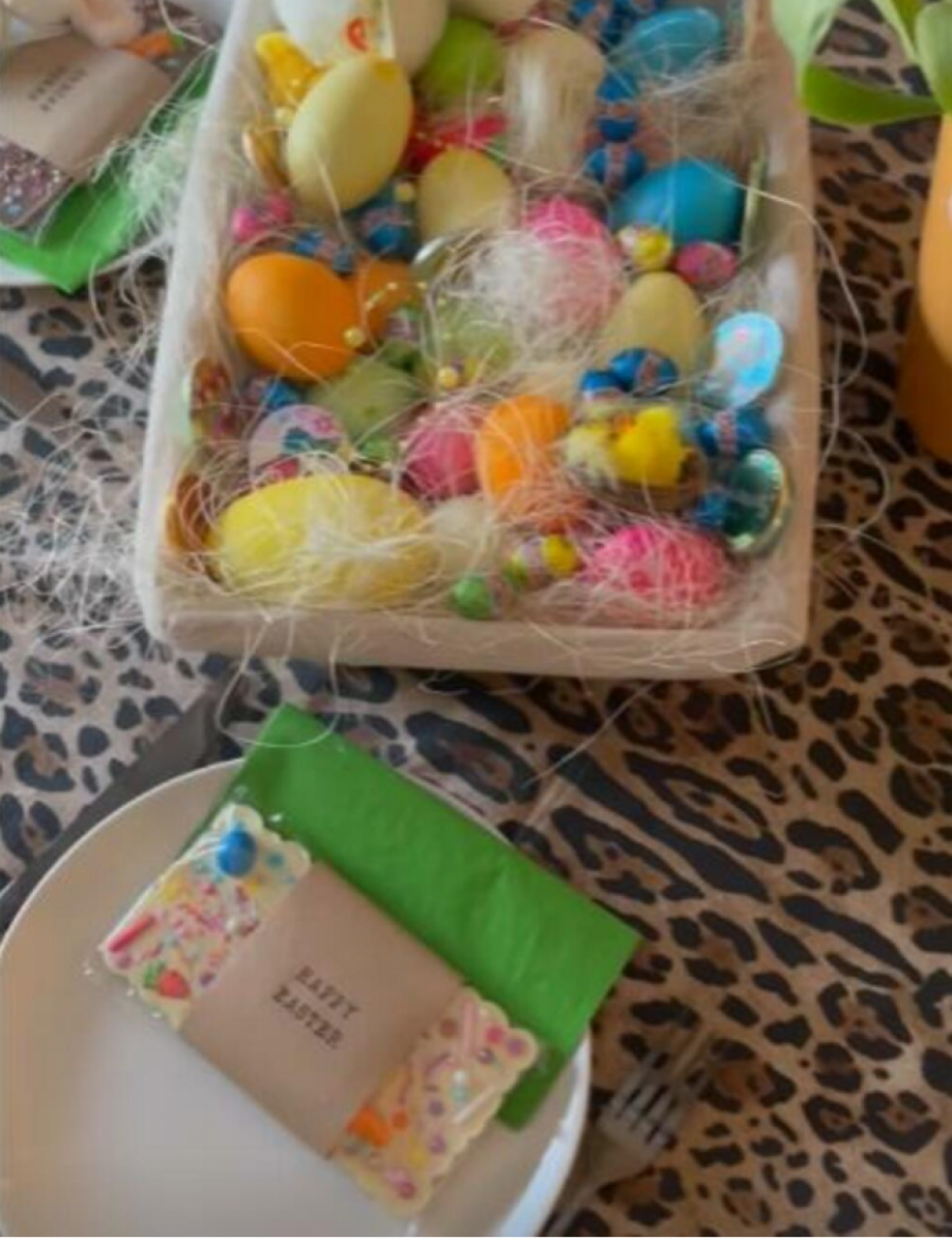 Na stolu su se našla jaja u gotovo svim bojama, ali i tigrasti stolnjak koji je upotpunio dekoraciju stola.