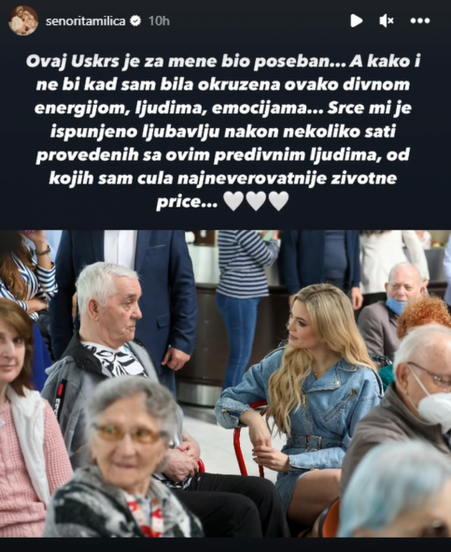 Mlada muzička zvezda Milica Pavlović posetila je juče, na drugi dan Uskrsa "Dom penzinera" na Bežanijskoj kosi, kako bi se družila sa korisnicima doma i ulepšala im praznične dane.