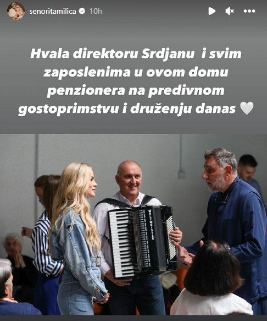 Milici je, inače, ovaj dom za stara lice veoma dobro poznat jer je u njemu u jednom periodu života boravila i njena baka Rada, zbog čega je između ostalog i prihvatila poziv direktora ustanove i ulepšala praznike starijim licima koji trenutno borave u njemu.