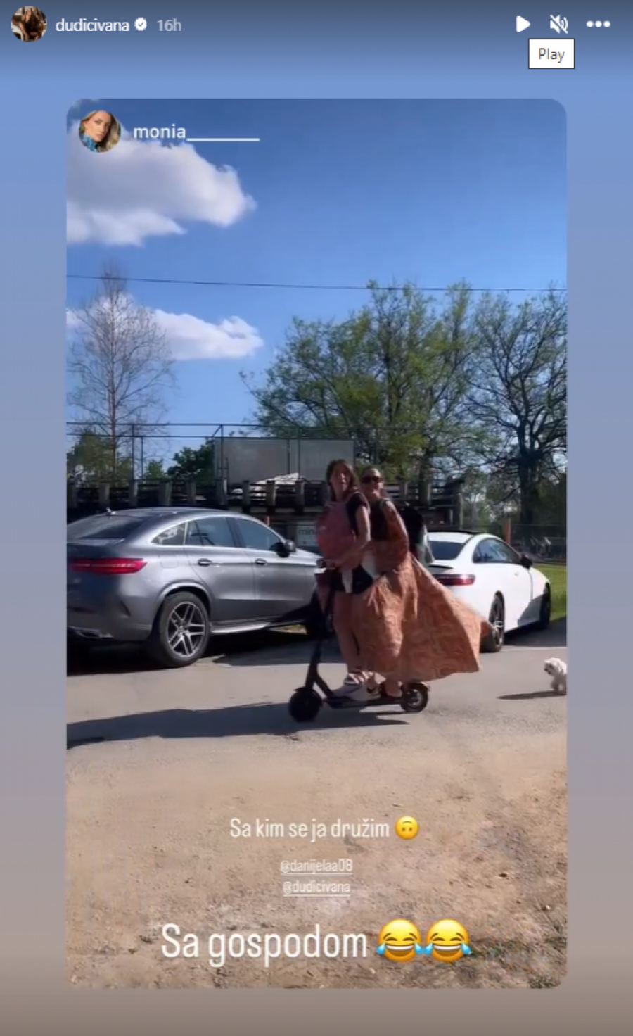 - Sa kim se ja družim - napisala je ona, dok se na snimku možete videti kako Ivana podiže nogu dok se vozi na trotinetu.