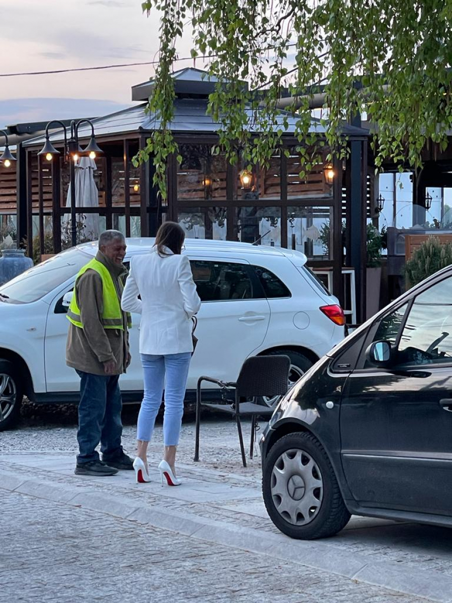 Nasmejana glumica, zadovoljno je izašla iz svog skupocenog četvorotočkaša, a ljubaznom parking čuvaru dala je lepu napojnicu.