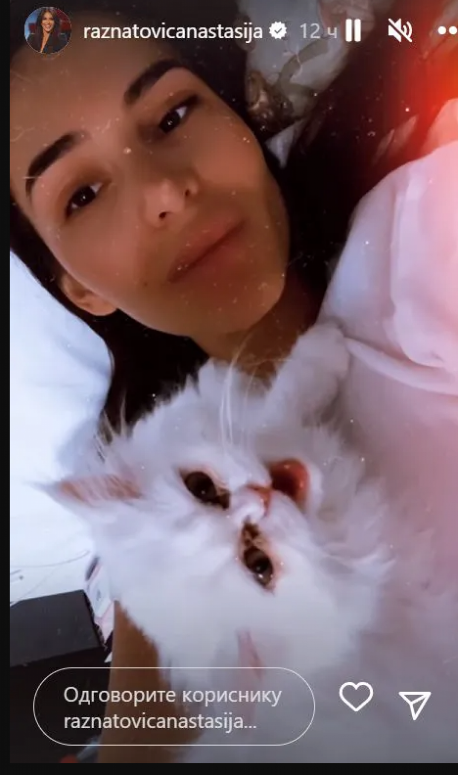 Naime, ona je podelila snimak iz kreveta na kome mazi mačku koja joj se umiljava i na kojoj Ražnatovićeva sija.