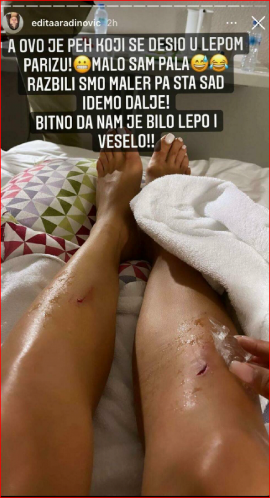 Prisutni su joj odmah pritekli u pomoć, a ona se na visokim potpeticama vratila na scenu i uprkos bolovima, nastavila sa radnim zadatkom kao da se ništa nije dogodilo.