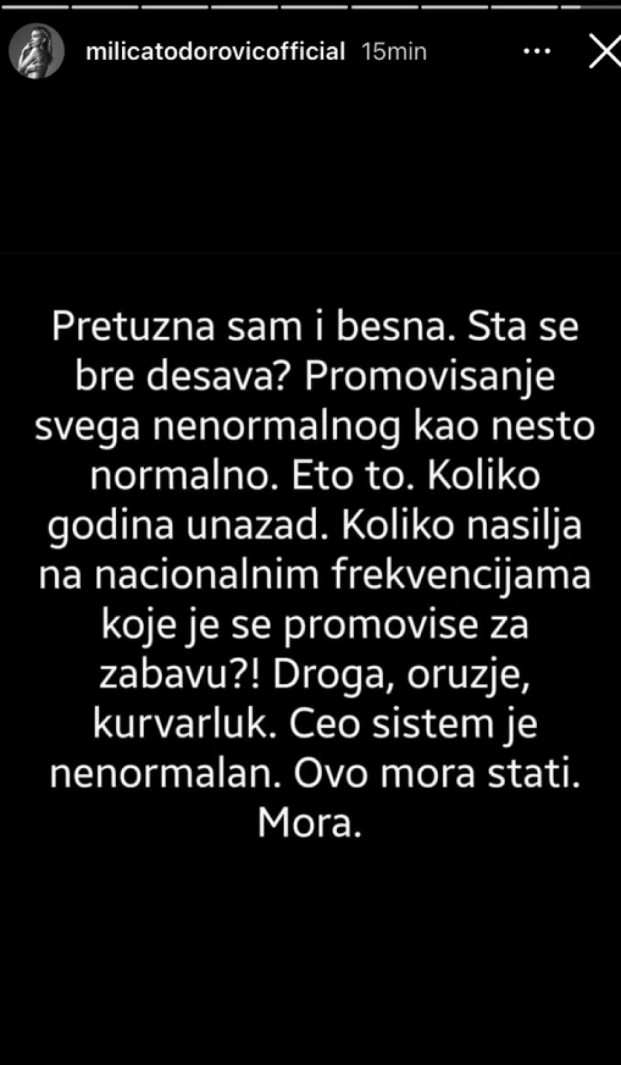 Jutros je javnost zatekla i duboko potresla vest o tragičnom događaju u osnovnoj školi „Vladislav Ribnikar“ na Vračaru u kojoj je došlo do pucnjave od strane maloletnog lica koje je usmrtilo više osoba. Tom prilikom oglasile su se i mnogobojne poznate ličnosti a među jima je i pevačica Milica Todorović koja se oglasila na društvenoj mreži Instagram i pritom otkrila da je ovo veoma težak dan i za njenu porodicu.