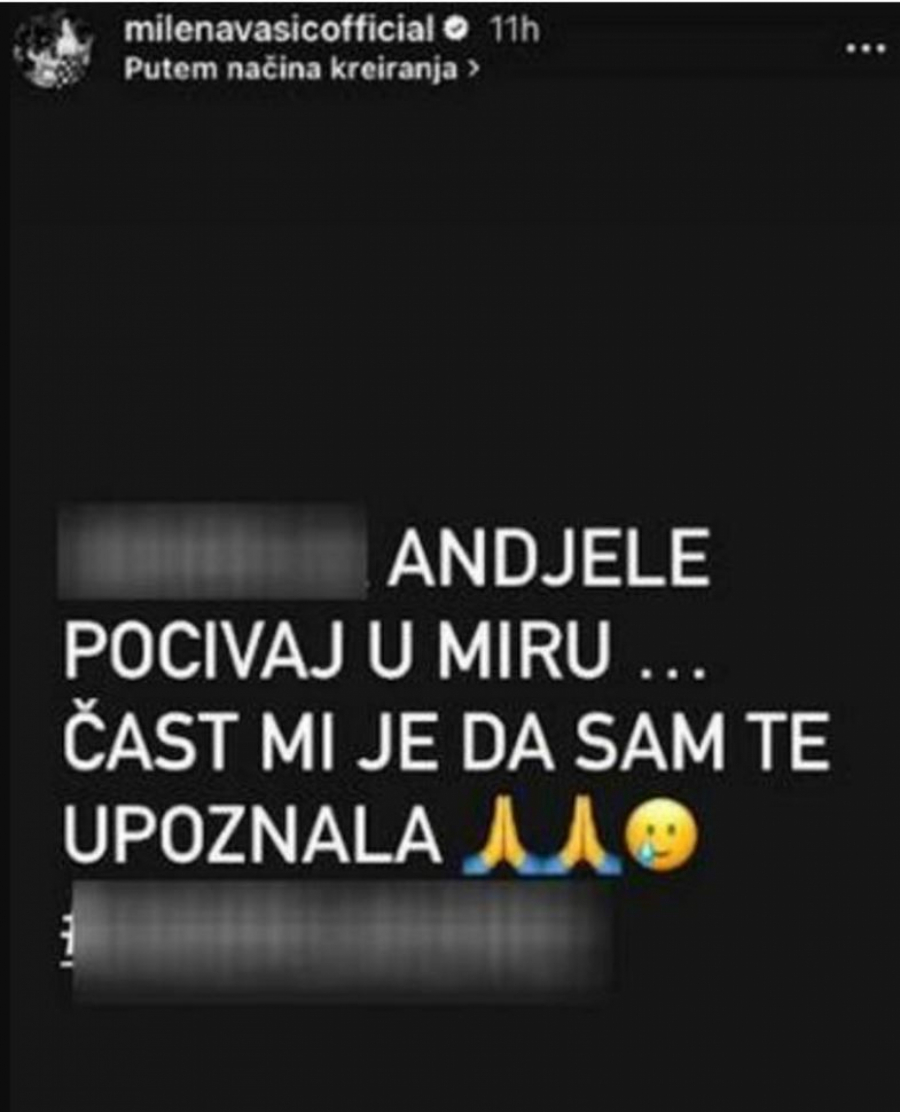 - Anđele, počivaj u miru. Čast mi je da sam te upoznala. Zbogom deco draga - poručila je glumica na mrežama.
